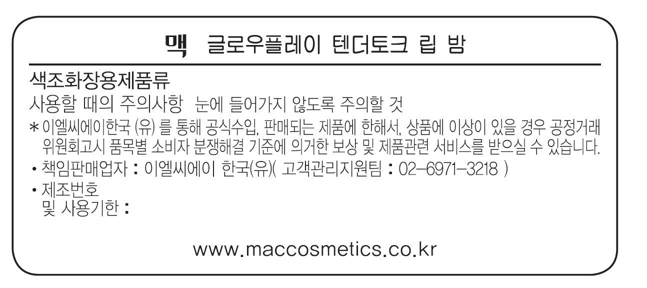 • 맥 글로우 플레이 텐더토크 립 밤, 서브, 3.14g, 1개