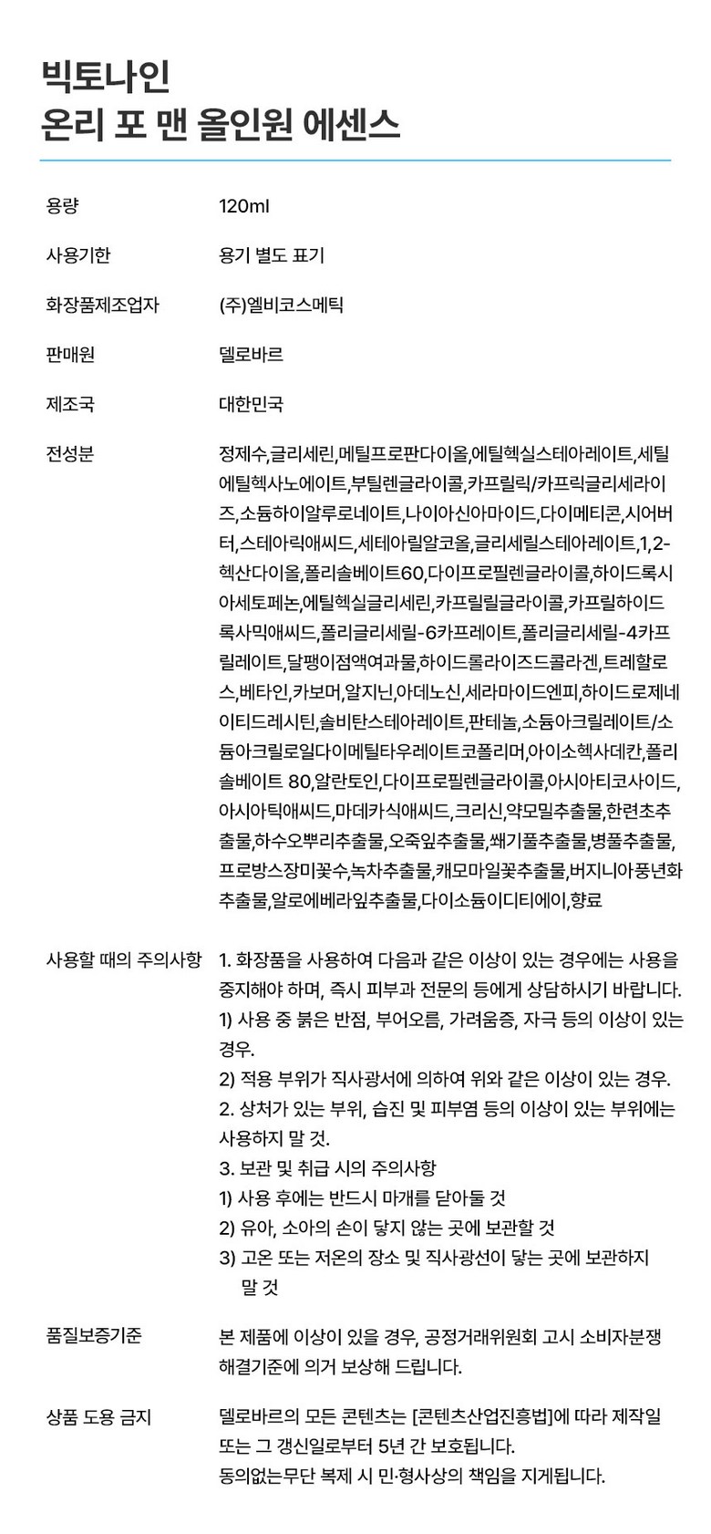 • 남성 올인원 스킨로션 주름/리프팅 빅토나인 남성 화장품, 1개, 120ml
