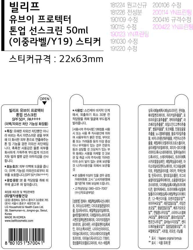 빌리프 UV 프로텍터 톤업 선스크린 SPF50+ PA++++, 50ml, 1개 요약정보 및 구매