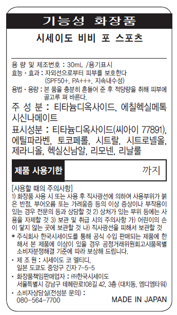 • 시세이도 포 스포츠 BB크림 SPF50+ PA+++, 미디움, 30ml, 1개