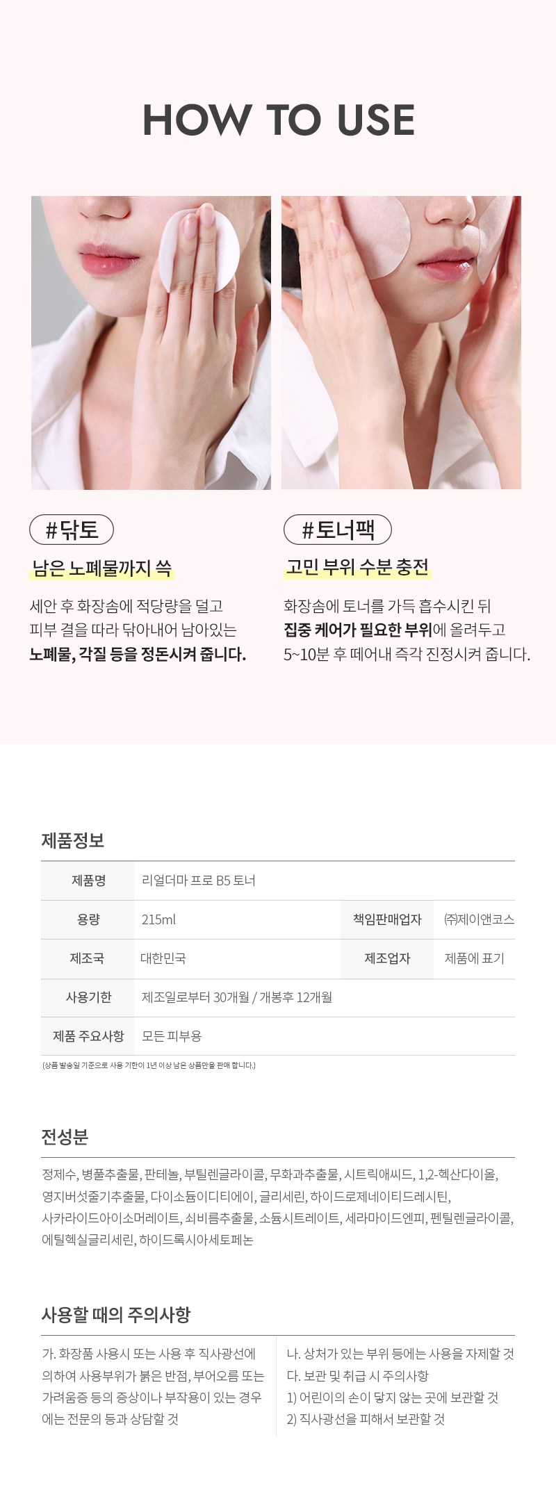 사용할 때 주의사항 상품페이지 참고