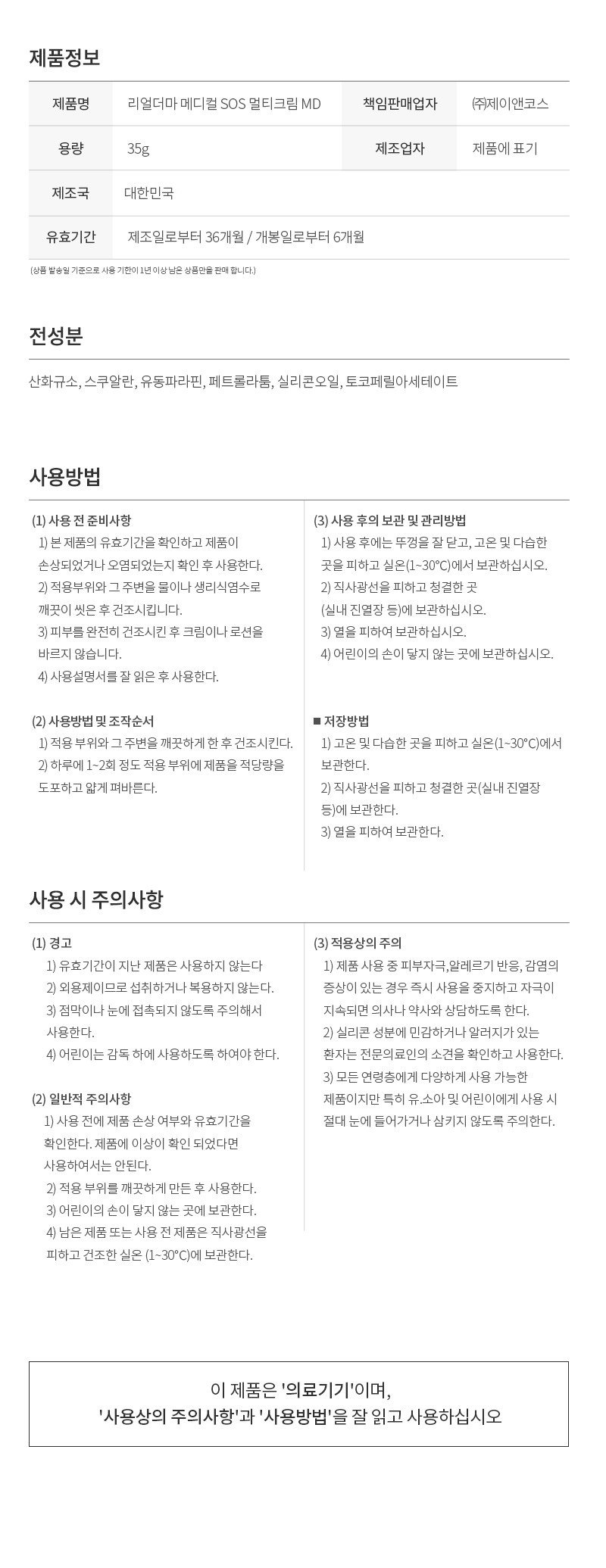 리얼더마 메디컬 SOS 멀티 크림 MD, 35g, 1개 요약정보 및 구매