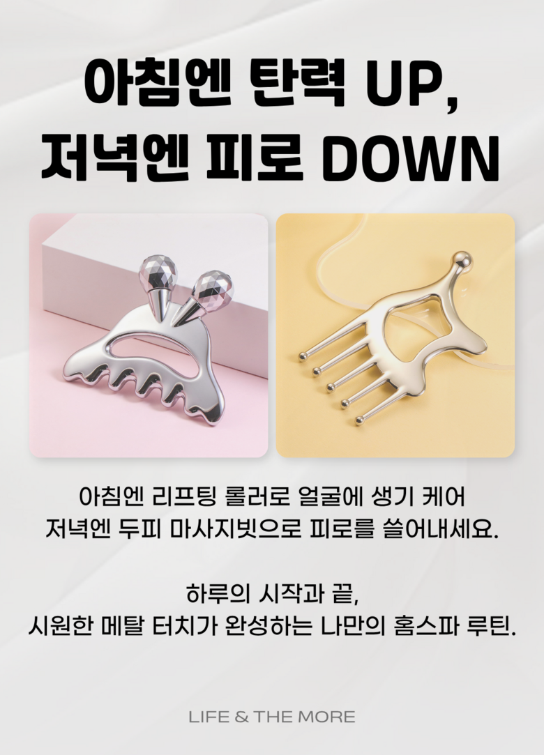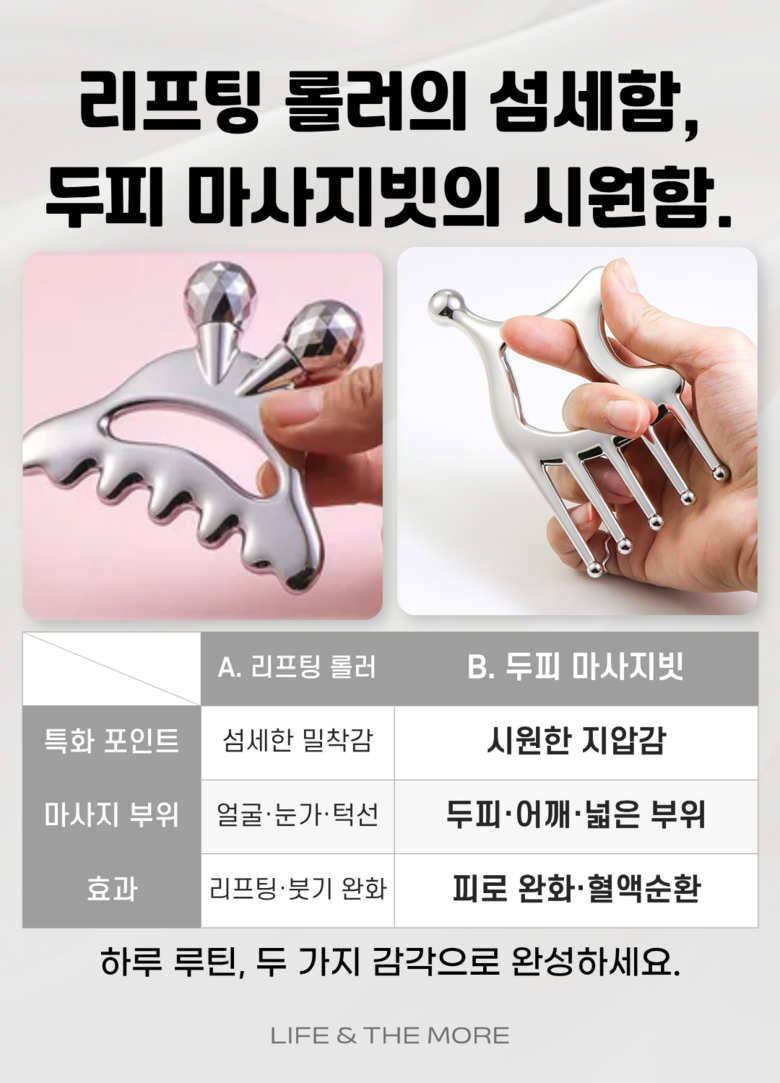 • 라앤모 메탈 괄사 냉온 얼굴 두피 마사지 림프순환 리프팅 홈케어 뷰티템