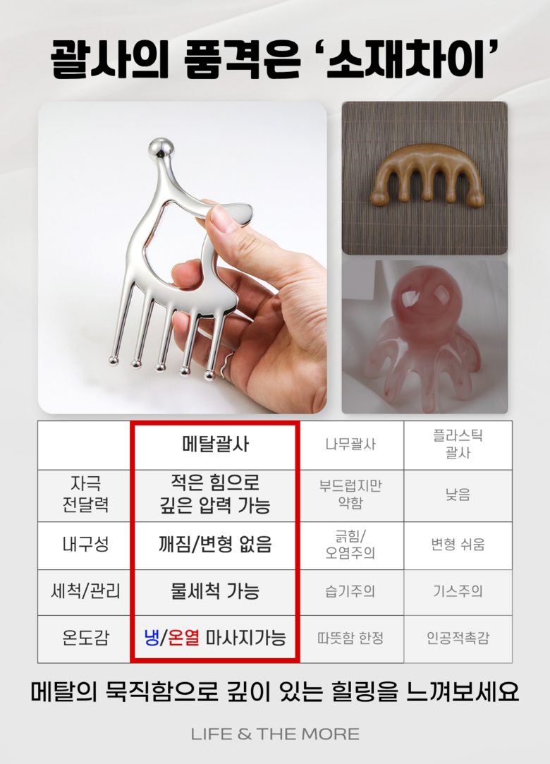 라앤모 메탈 괄사 냉온 얼굴 두피 마사지 림프순환 리프팅 홈케어 뷰티템 요약정보 및 구매