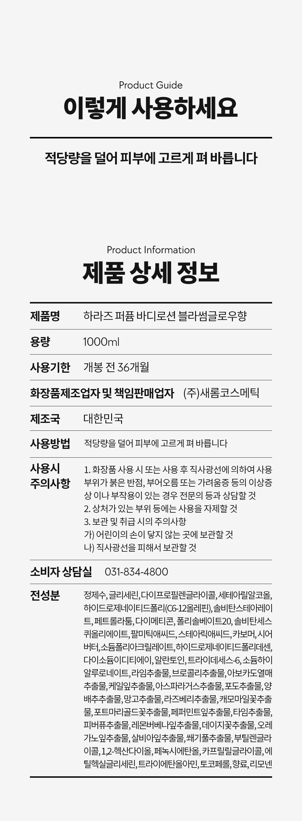 하라즈 퍼퓸 바디로션 블라썸글로우향, 1L, 1개 요약정보 및 구매