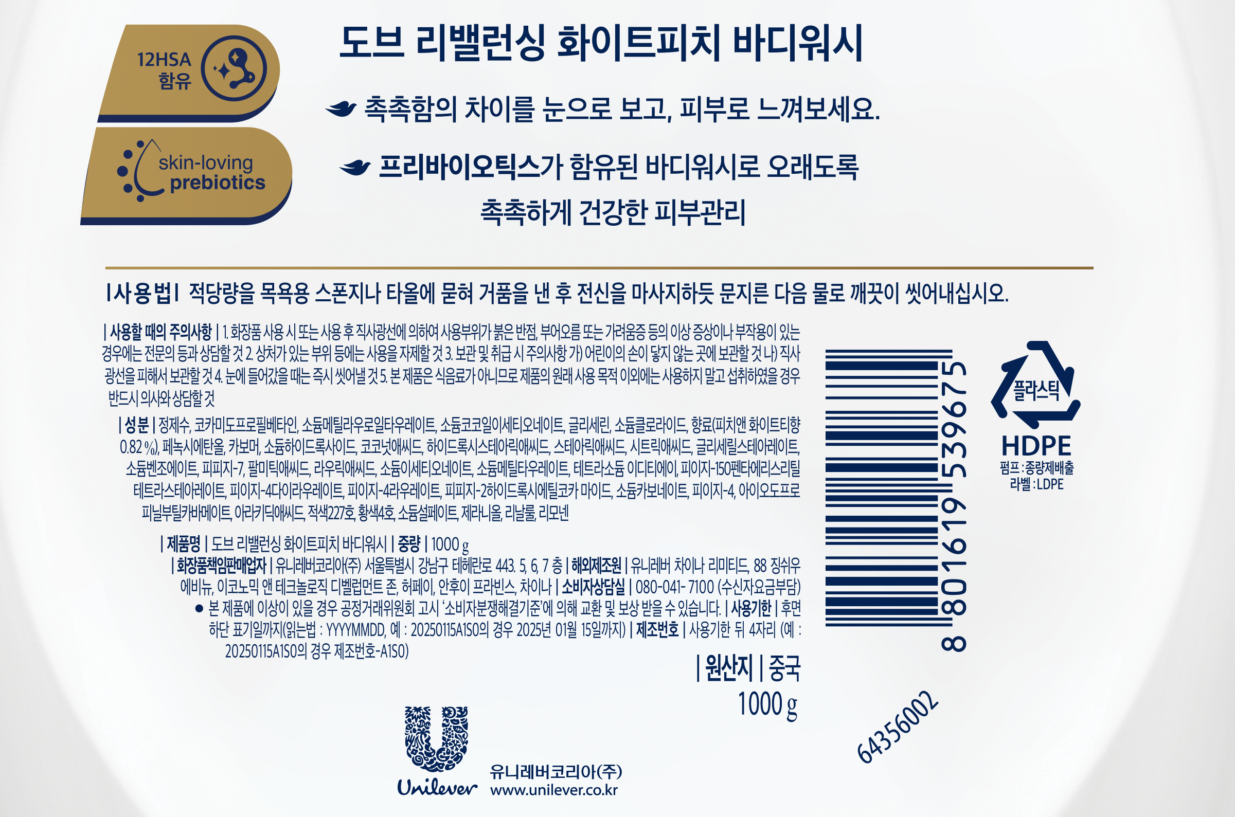 도브 리밸런싱 바디워시 화이트피치, 1000g, 1개 요약정보 및 구매