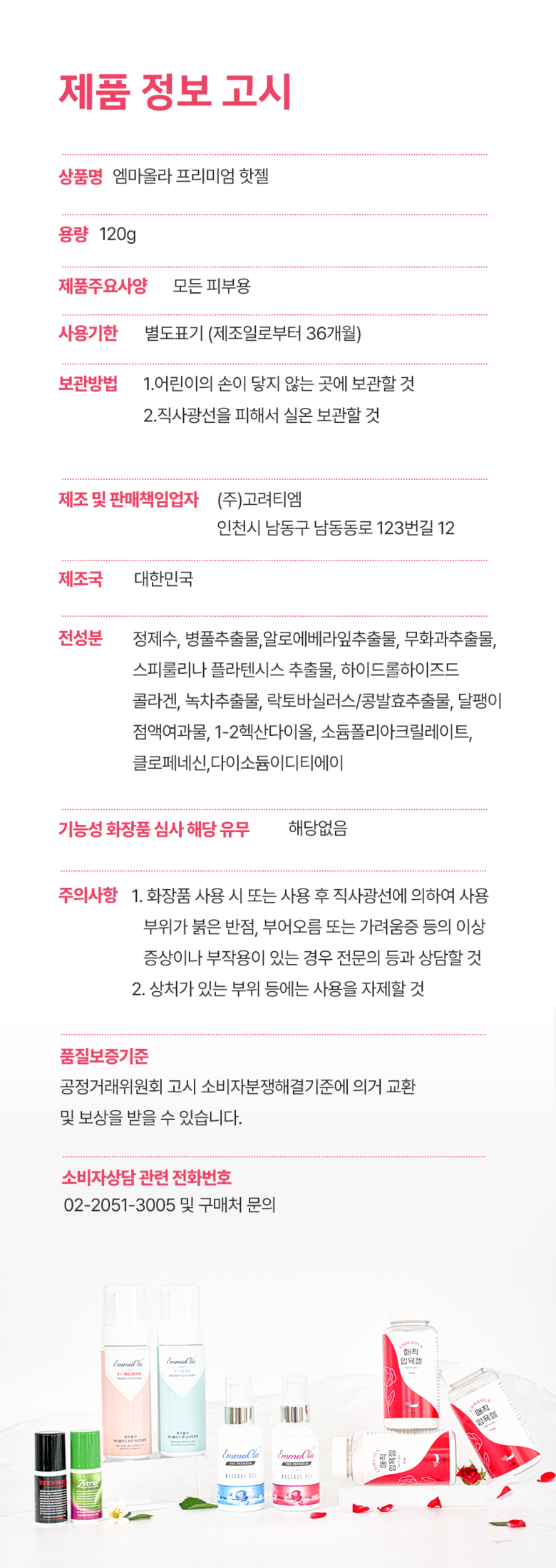 엠마올라 핫 러브젤 수용성젤 약산성 유산균 마사지 백화점면세점, 120g, 1개 요약정보 및 구매
