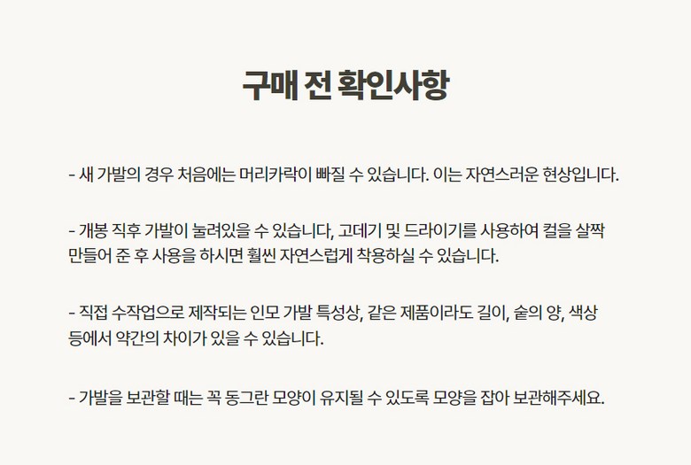 사용할 때 주의사항 상품페이지 참고