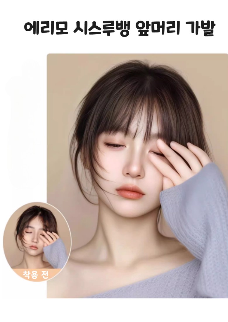 에리모 시스루뱅 앞머리 가발 여자 부분 가발 헤어피스, 1개, 내츄럴블랙 요약정보 및 구매