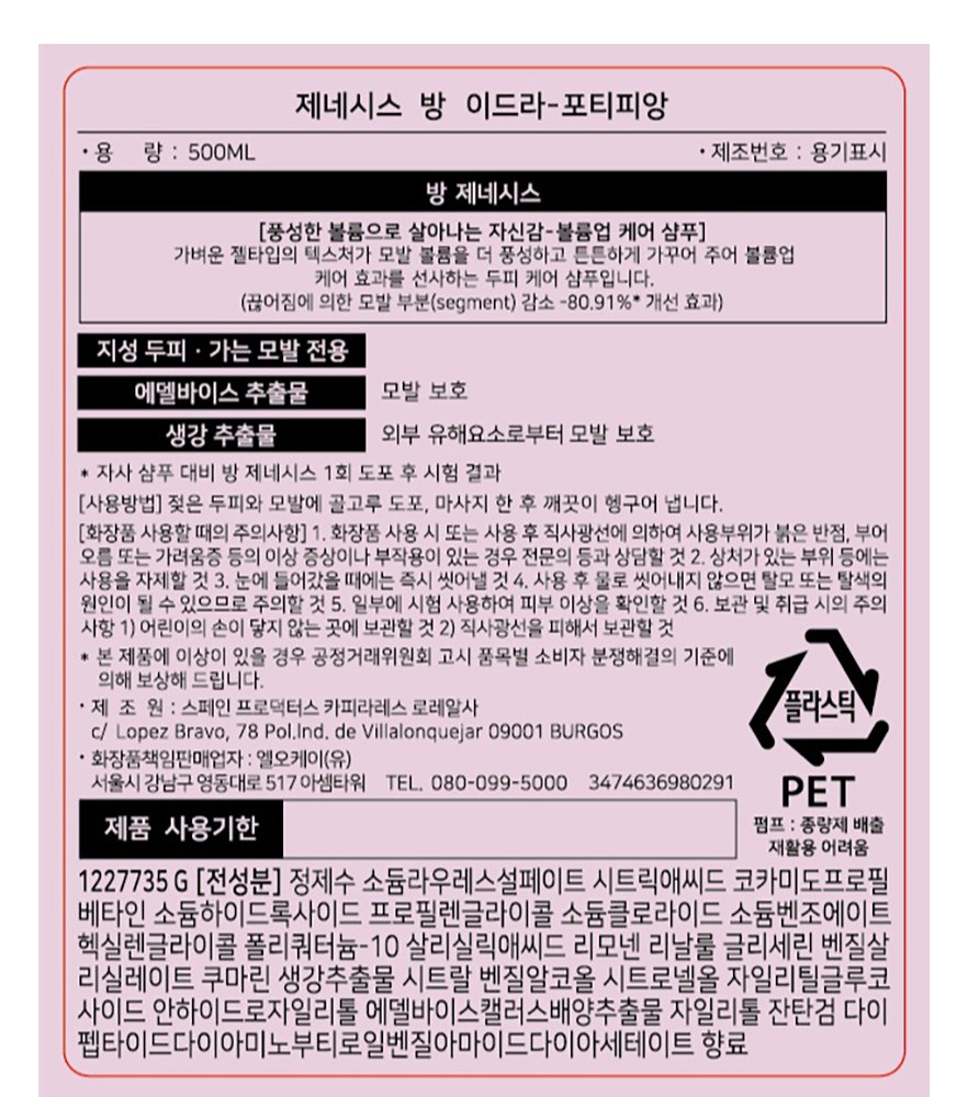 케라스타즈 제네시스 방 이드라 포티피앙 샴푸, 1개, 500ml (+R.LUX 케라스타즈 사은품3종 증정) 요약정보 및 구매