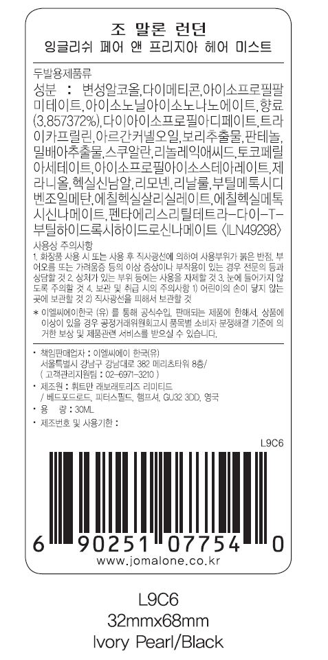 • 조말론런던 잉글리쉬 페어 앤 프리지아 헤어 미스트, 30ml, 1개