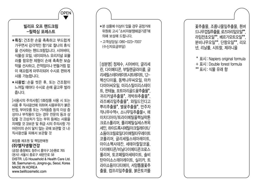 • 빌리프 오프 핸드크림 릴렉싱 포레스트, 50ml, 1개