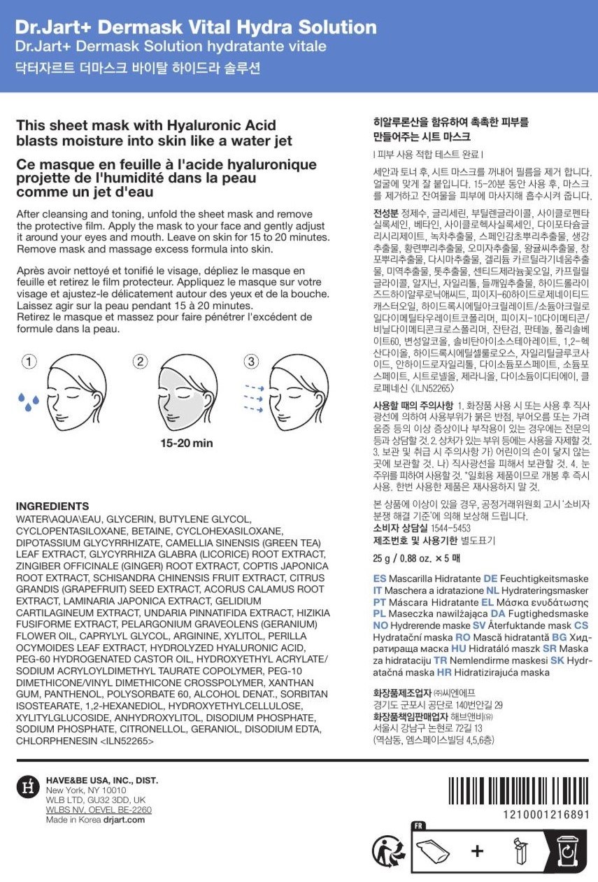 닥터자르트 더마스크 워터젯 바이탈 하이드라 솔루션 팩, 5개입, 1개 요약정보 및 구매