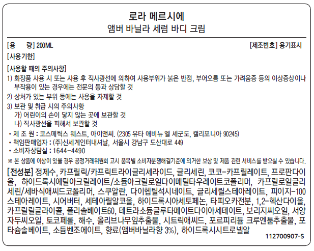 로라메르시에 세럼 바디 크림 앰버 바닐라, 200ml, 1개 요약정보 및 구매