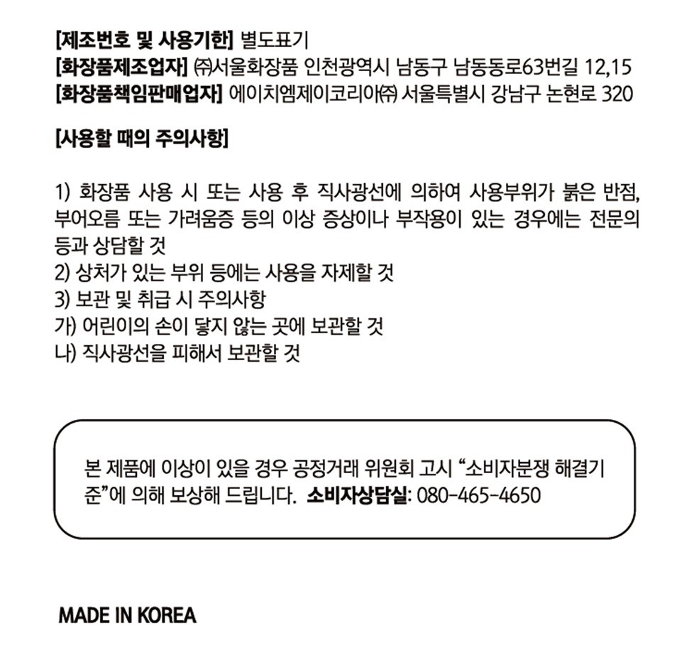 사용기한 또는 개봉 후 사용기간 상품페이지 참고