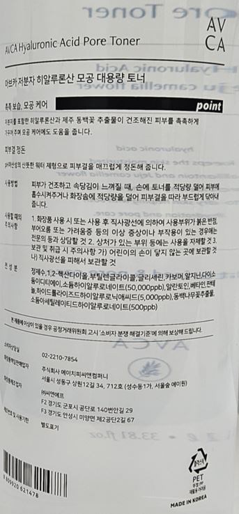 • 아브카 저분자 히알루론산 대용량 모공 토너, 1L, 1개