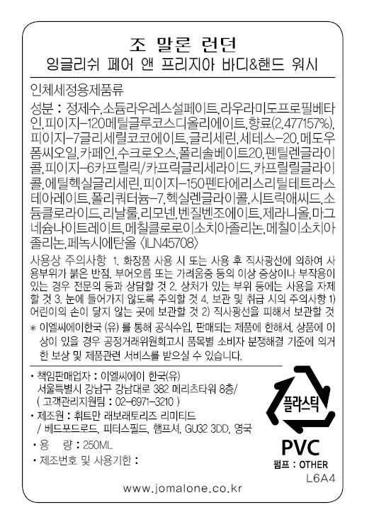조말론런던 바디 앤 핸드워시 잉글리쉬 페어 앤 프리지아, 1개, 250ml 요약정보 및 구매