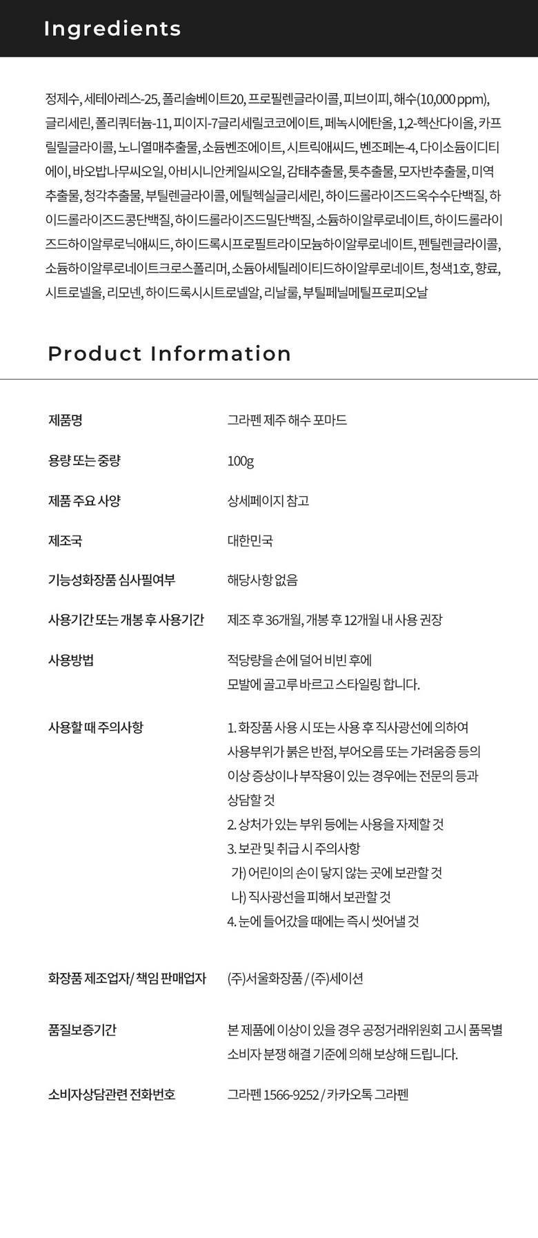 그라펜 해수 포마드 헤어왁스, 100g, 2개 요약정보 및 구매