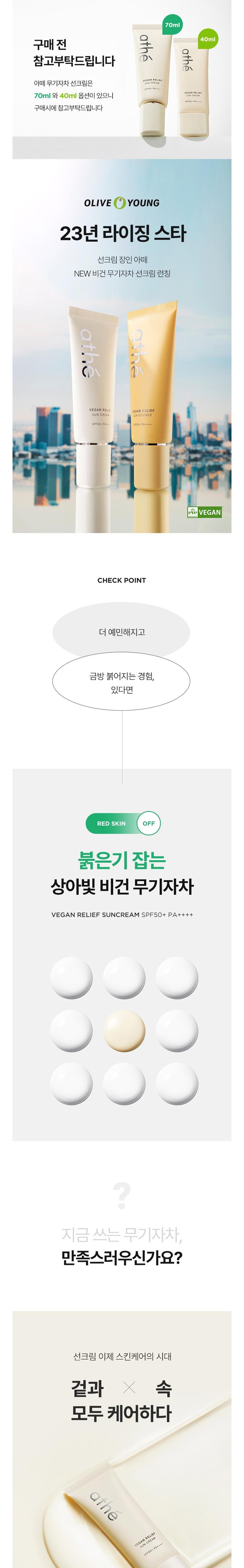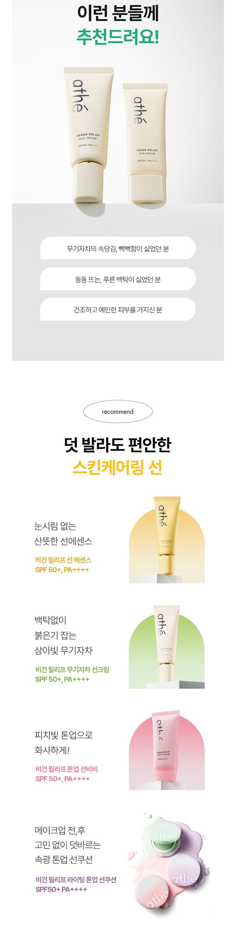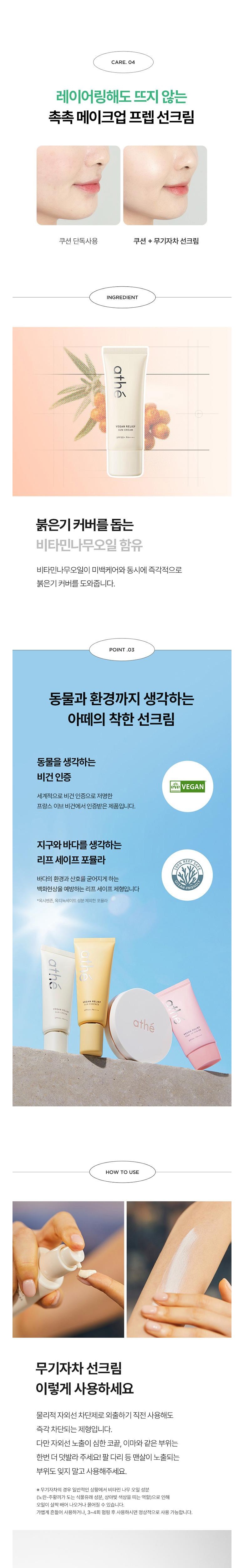 • 아떼 비건 릴리프 무기자차 선크림 PA++++ SPF+, 40ml, 2개