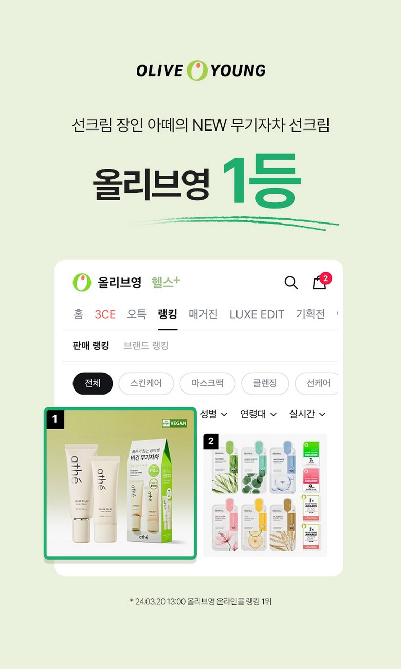 아떼 비건 릴리프 무기자차 선크림 PA++++ SPF+, 40ml, 2개 요약정보 및 구매