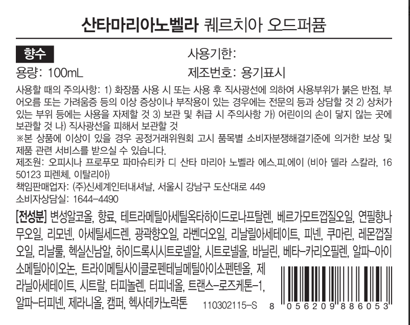 • 산타마리아노벨라 메디치 가든 컬렉션 퀘르치아 오 드 퍼퓸, 100ml, 1개