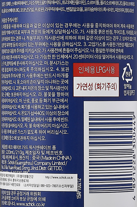 • 쉬크 쉐이브가드 워시 앤 쉐이빙폼, 210g, 5개