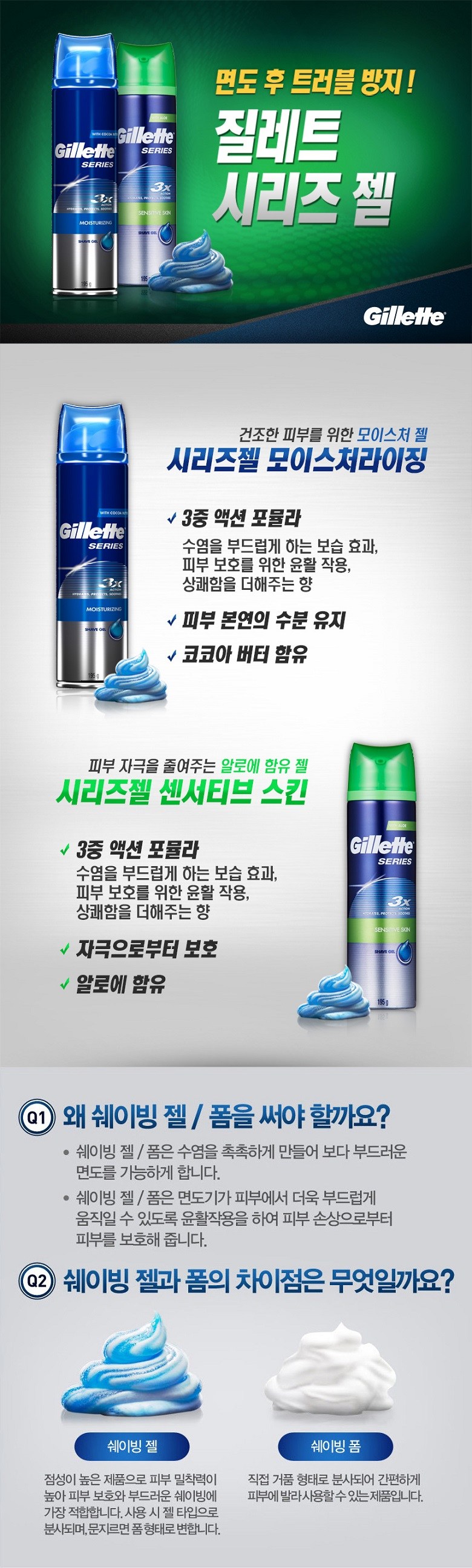 • 질레트 정품 시리즈젤 센서티브 스킨 쉐이빙 젤, 195g, 1개