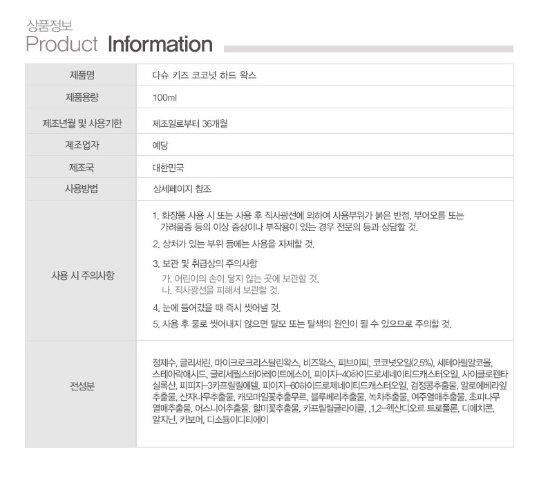다슈 키즈 코코넛 하드 헤어왁스, 100ml, 1개 요약정보 및 구매