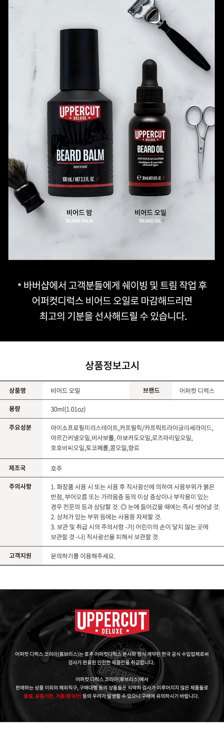 어퍼컷디럭스 UPPERCUT DELUXE - 비어드 오일 (Beard Oil) 어퍼컷디럭스코리아 정식수입제품, 30ml, 1개 요약정보 및 구매
