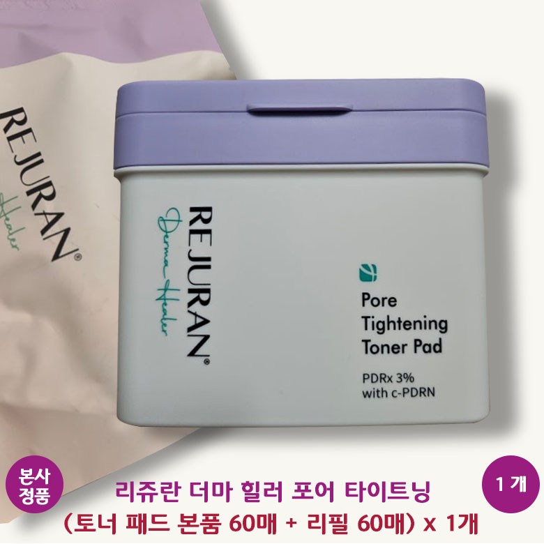 [본사 정품] 리쥬란 더마 힐러 포어 타이트닝 토너 패드 220mL (60매) + 리필 파우치 (60매) 민감 피부 탄력 모공케어 슬로우 에이징 피부 진정 광채 보습 유수분밸런스, 2개, 120매입 요약정보 및 구매