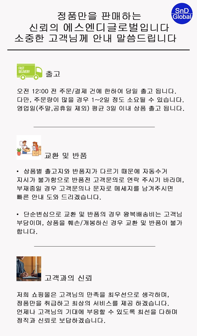 • ㆍ천재지변, 물량 수급 변동 등 예외적인 사유 발생 시, 다소 지연될 수 있는 점 양해 부탁드립니다.