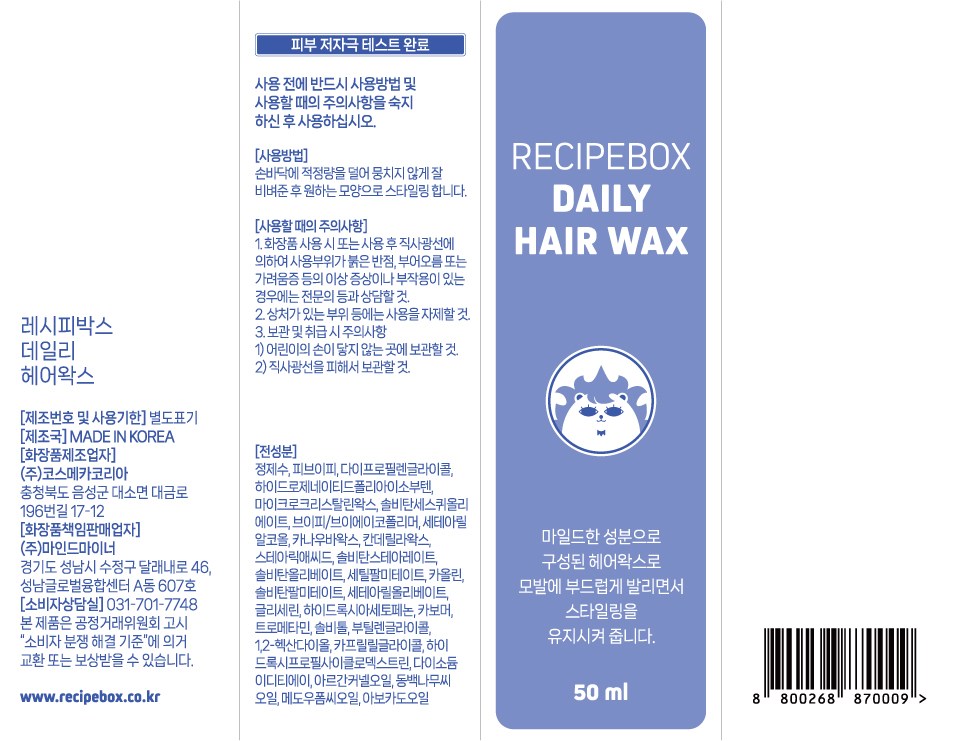• 레시피박스 아동용 데일리 헤어왁스, 1개, 50ml